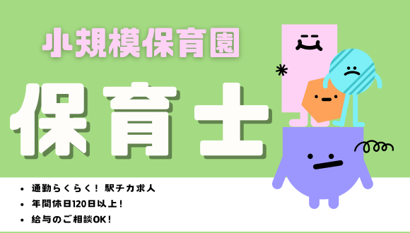 保育士/パート/週3~/扶養内OK/早番遅番含む短時間OK/未経験OK/小規模なので園児一人一人とじっくり関われます♪
