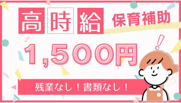 保育士補助業務/フルタイムOK/週3~5日/高時給1500円~/お休み希望OK/書類業務なし!残業なし!
